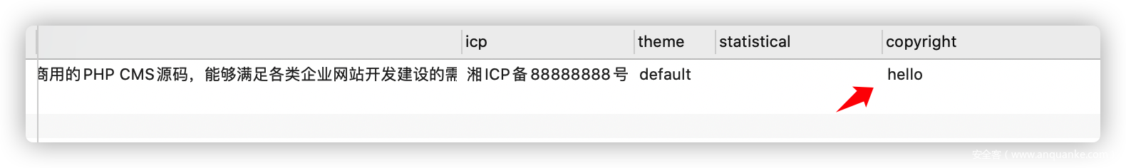 首先第一个问题很好解决,在之前的版本中我们是在站点信息的尾部信息处来写入标签,对应的是ay_site表中的copyright字段,那么我们写入标签的语句初步为
