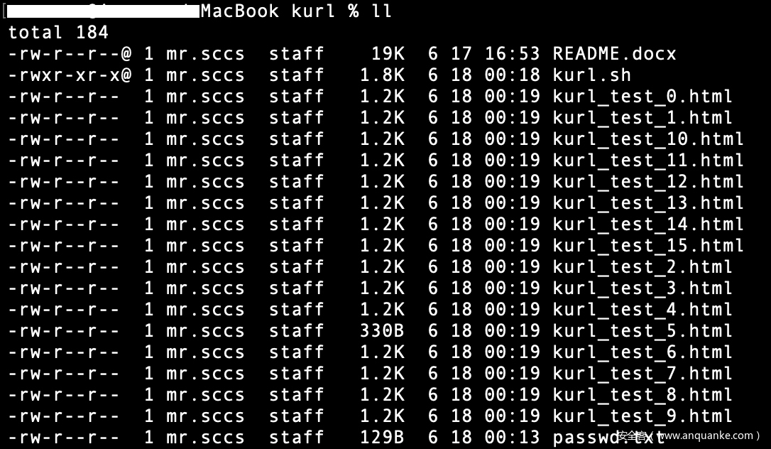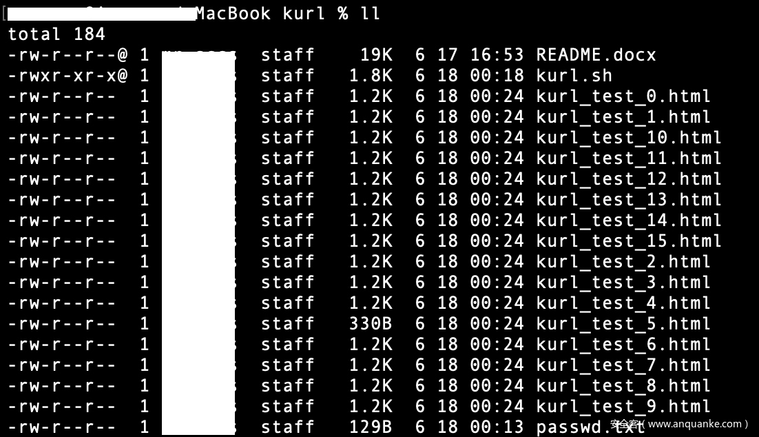 考虑到每次读取和保存的html页面体积较小,因此没有做一个专门的kurl_check_passwd函数。使用者只需要通过cat命令,diff命令以及ls命令进行简单的判断,即可知晓哪一个可能是真实的登录密码。如前文所述,登录成功和失败两种情况通常只会对应两个不同大小以及http status代码(如果服务端返回http status代码)的页面。kurl工具Demo完整代码如下: