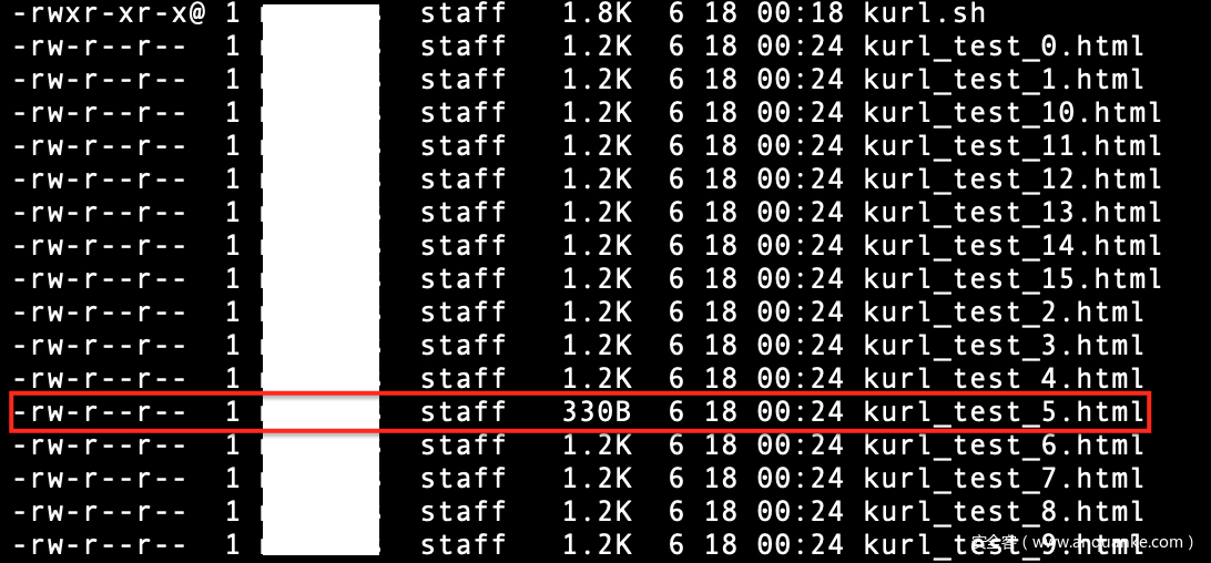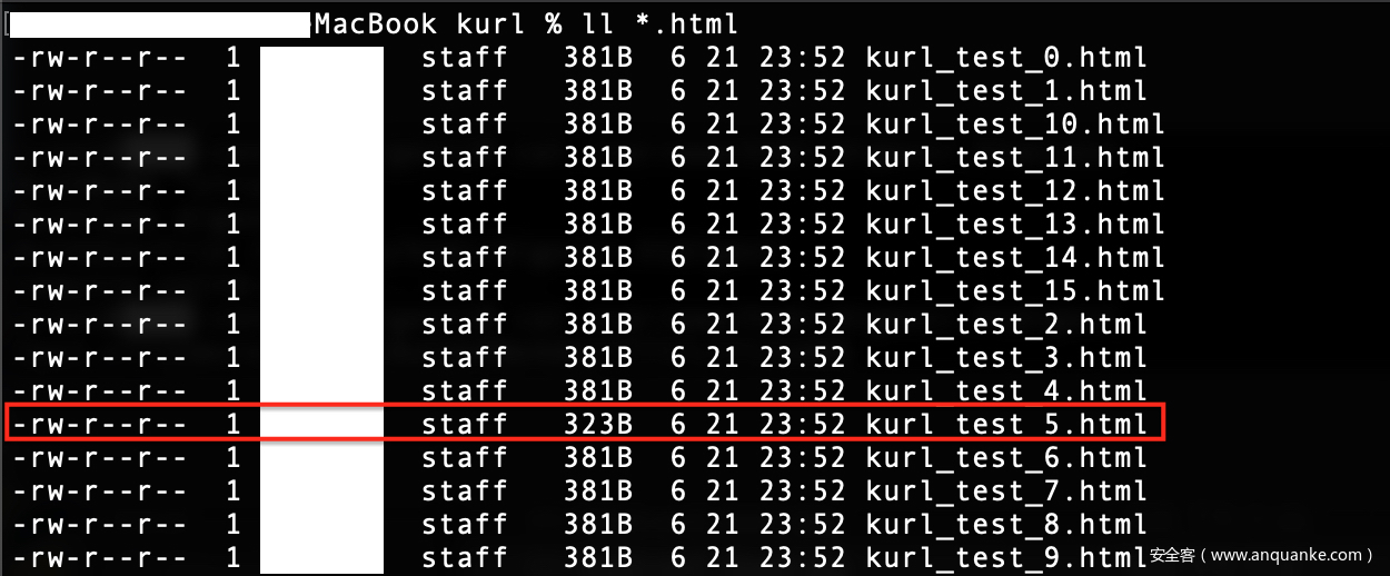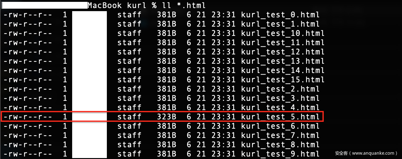 从上面图中我们可以清晰的看到,kurl_test_5.html文件对应的大小与其它文件不同,其对应的密码正是test用户的密码“admin@123”。