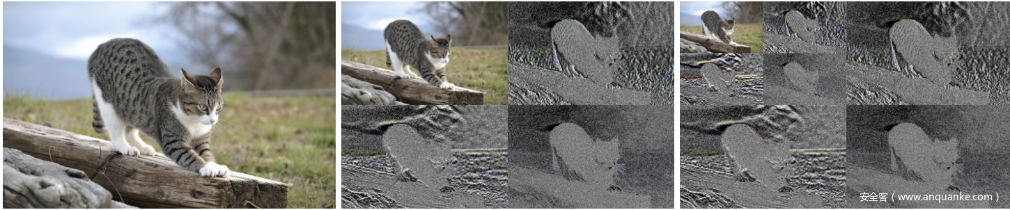 可见经过 DWT 处理后,可以滤出图片的轮廓信息(右下角)和细节信息(左上角)。
