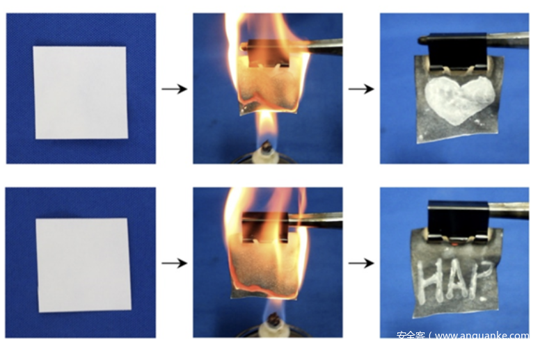 比如下图是中科院上海某化学所的隐写耐火纸,可以看到在一张看似普通的白纸之中,却隐藏了一个图案和字母。这个图案和字母就属于暗水印。它可以用来隐秘传输信息、做防伪标识等。