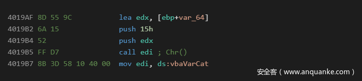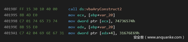 这是一种众所周知的标准技术,常见于使用VBA和VB6语言编写的恶意软件中。