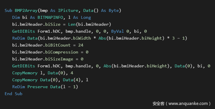 我们知道,有多种方法可以将数据无损嵌入到图像格式中。其中,最常见的方法,就是将数据直接嵌入位图图像的结构中。位图可以直接保存在VB6的图像和Picture控件中。需要注意的是,以这种方式嵌入的数据,在编译前将被保存在.FRX表格资源文件中。一旦编译完成,这些数据将被保存到目标窗体元素的二进制属性字段中。像这样的图像可以用一个特殊的工具生成,然后用IDE直接嵌入到表单中。