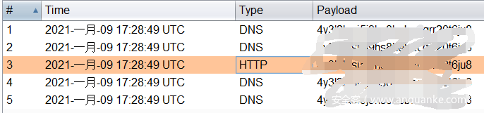 我们看到我们接收到了两条DNS请求和一条HTTP请求,我们看一下它们的具体内容