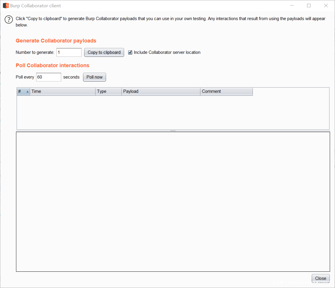 我们看到这个payload模板利用了我们后面才会介绍的xxe漏洞,因为不是本篇的重点,所以我们后面再讲,然后我们到collaborator客户端看看能不能接收到什么东西