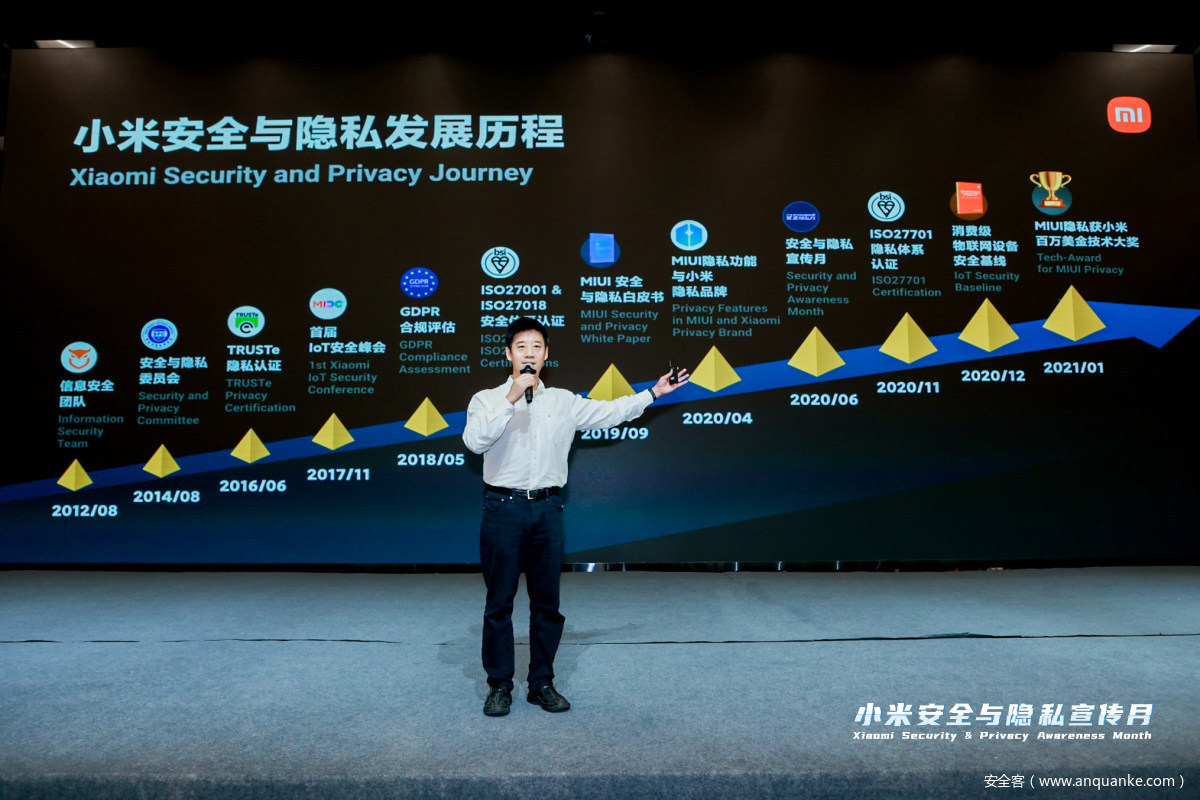 闭幕式上,小米集团副总裁、安全与隐私委员会主席崔宝秋表示,“雷总一贯强调‘尊重用户的隐私是小米的核心价值观之一,我们在用户数据保护方面坚持符合全球最高标准’。小米作为一家年轻的财富500强公司,一家以‘手机 x AIoT’为核心战略的铁人三项公司,各种业务发展迅猛,智能手机出货量稳居世界前三,拥有超过4亿的MIUI月活用户和超过3.5亿联网IoT设备,我们深知责任重大。通过小米安全与隐私宣传月活动,我们致力于让社会各界充分了解用户的个人信息如何被收集、使用和保护。我们有信心说,我们遵循了全世界一流的安全隐私标准和透明度,这一点获得全球安全检测与认证机构的广泛认可。”