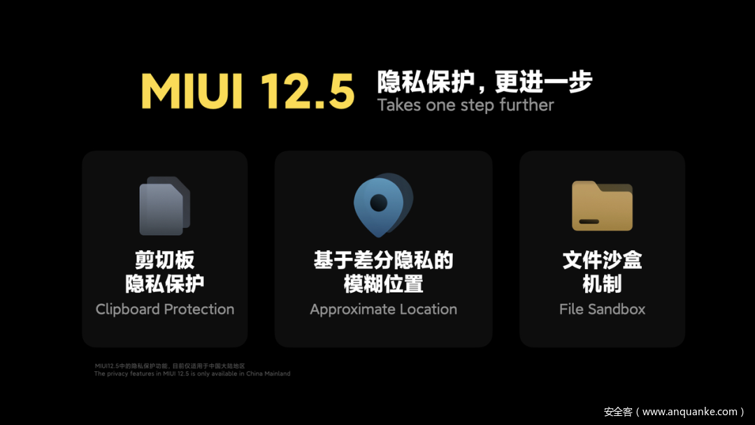 作为小米的核心产品,MIUI始终秉承“将用户的信息安全和隐私保护视为我们的生存之本”的价值观,致力于从保护用户隐私的角度出发,在产品设计、研发技术上不断创新。2020年,小米MIUI 12系统版本的发布,是改变行业的里程碑。小米MIUI推出了照明弹、拦截网、隐匿面具、剪切板隐私保护、沙盒机制、模糊定位等诸多业界领先的隐私保护功能。值得一提的是,“MIUI隐私保护团队”因此荣获2020年小米百万美金技术大奖,这也印证了小米公司对隐私保护的重视程度及对技术创新的鼓励。