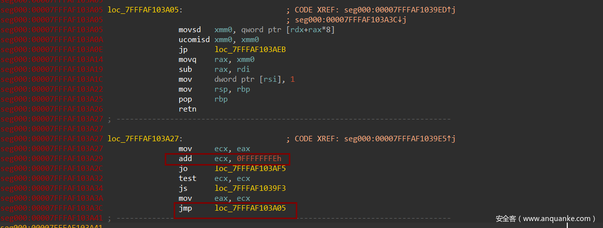 0x7fffaf101fd1: jae 0x7fffaf1024cb