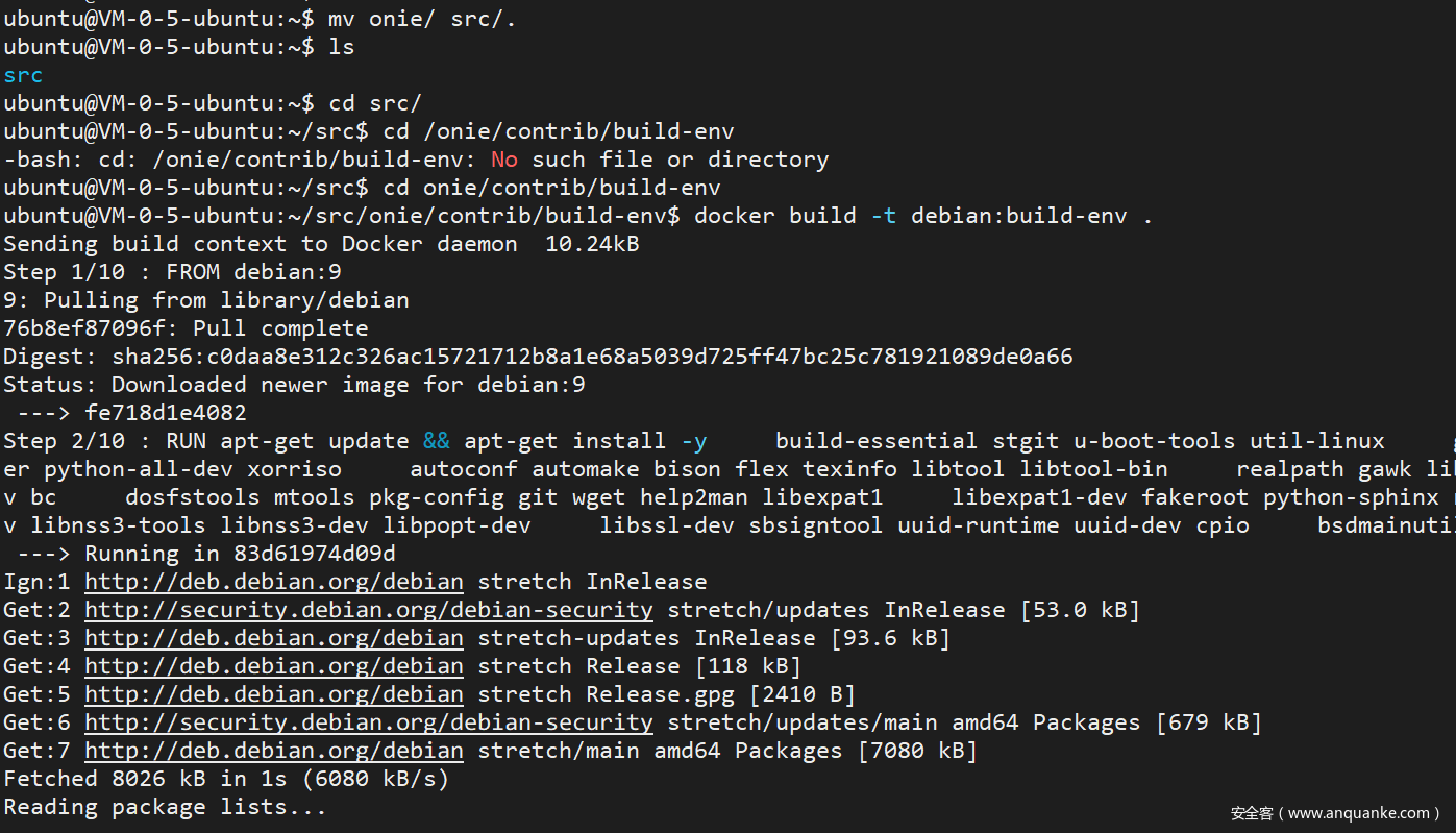 先克隆ONIE的Repo,切换到容器目录,然后安装docker,构建容器