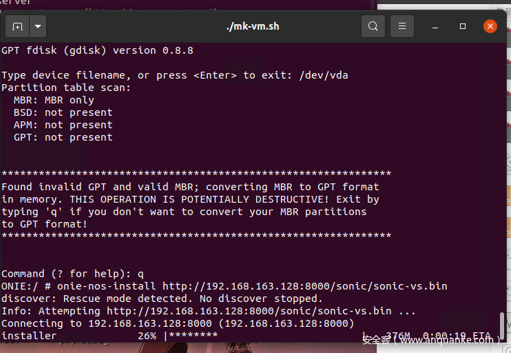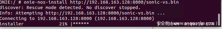 rescue模式进入ONIE,onie-nos-install http://虚拟机内网IP/sonic-vs.bin