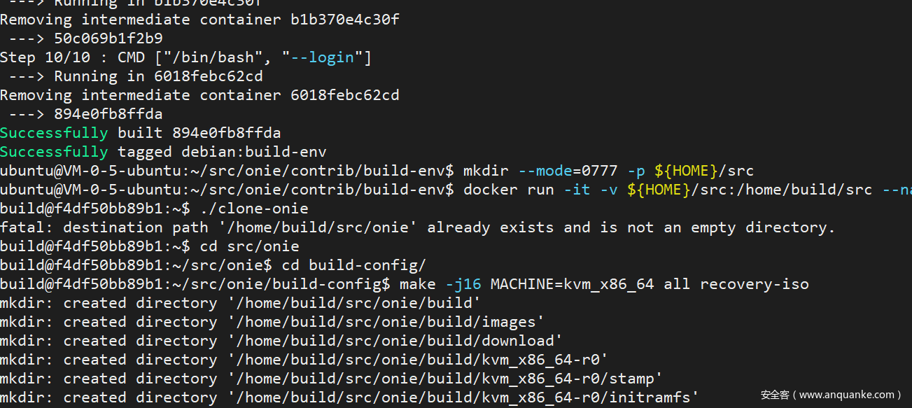 一开始尝试手动搭建的构建方法,发现各种库没装,装好了编译途中坎坷不断,后来发现官方提供了安装好各种编译环境的容器:https://github.com/opencomputeproject/onie/tree/2021.05-rc1/contrib/build-env