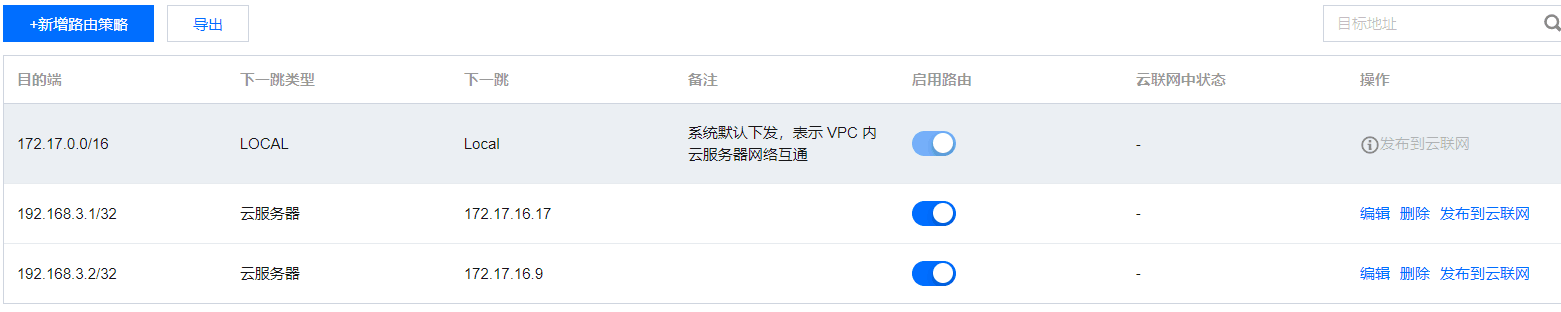 进行下列配置之前,先在VPC上配置路由表,并把路由表应用到两台SONIC所在的子网