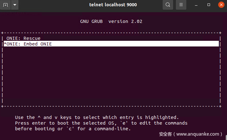 启动后马上进onie-embed自动开始安装onie,没进成功进了recovery,想要回到grub请reboot