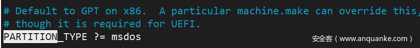 如果期望分区表为MBR,则需在machine/kvm_x86_64/machine.make把