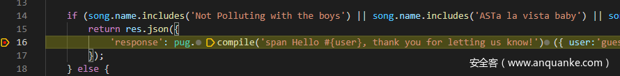 另外再说一下,因为jade和pug比较像,所以我尝试了一下在jade模板引擎里面这条链打不打得通,发现可以,payload如下,分析就不贴了,差不多的.