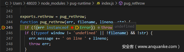 未污染的时候self为undefined值.然后接着调试,发现报错的时候有惊喜,报错的时候有一个filename是undefined,尝试把它污染,污染之后会继续执行后面的代码,否则会直接throw error.