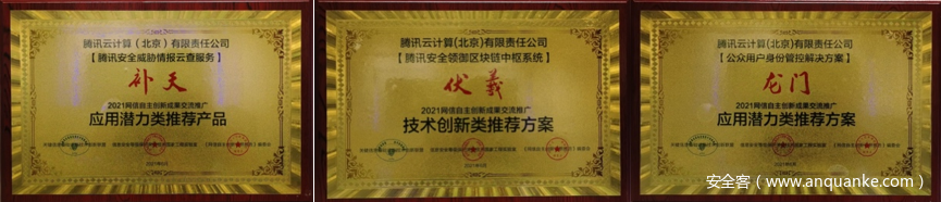其中,腾讯安全威胁情报云查服务,获得应用潜力类推荐产品 “补天奖”;腾讯安全领御区块链中枢系统,获得技术创新类推荐方案 “伏羲奖”;公众用户身份管控解决方案,获得应用潜力类推荐方案 “龙门奖”。腾讯安全凭借在安全领域领先的技术积累和丰富的行业实践,再一次获得行业肯定与认可。