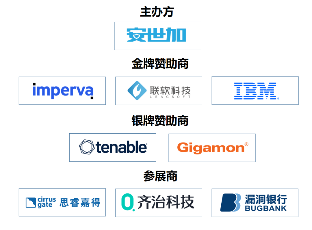 最后,感谢本次峰会的赞助商Imperva、联软、IBM、Tenable、Gigamon、思睿嘉得、齐治科技、漏洞银行以及所有SRC单位和媒体们,因为有你们的鼎力支持,本届AFSS-亚太金融安全峰会才得以顺利召开!
