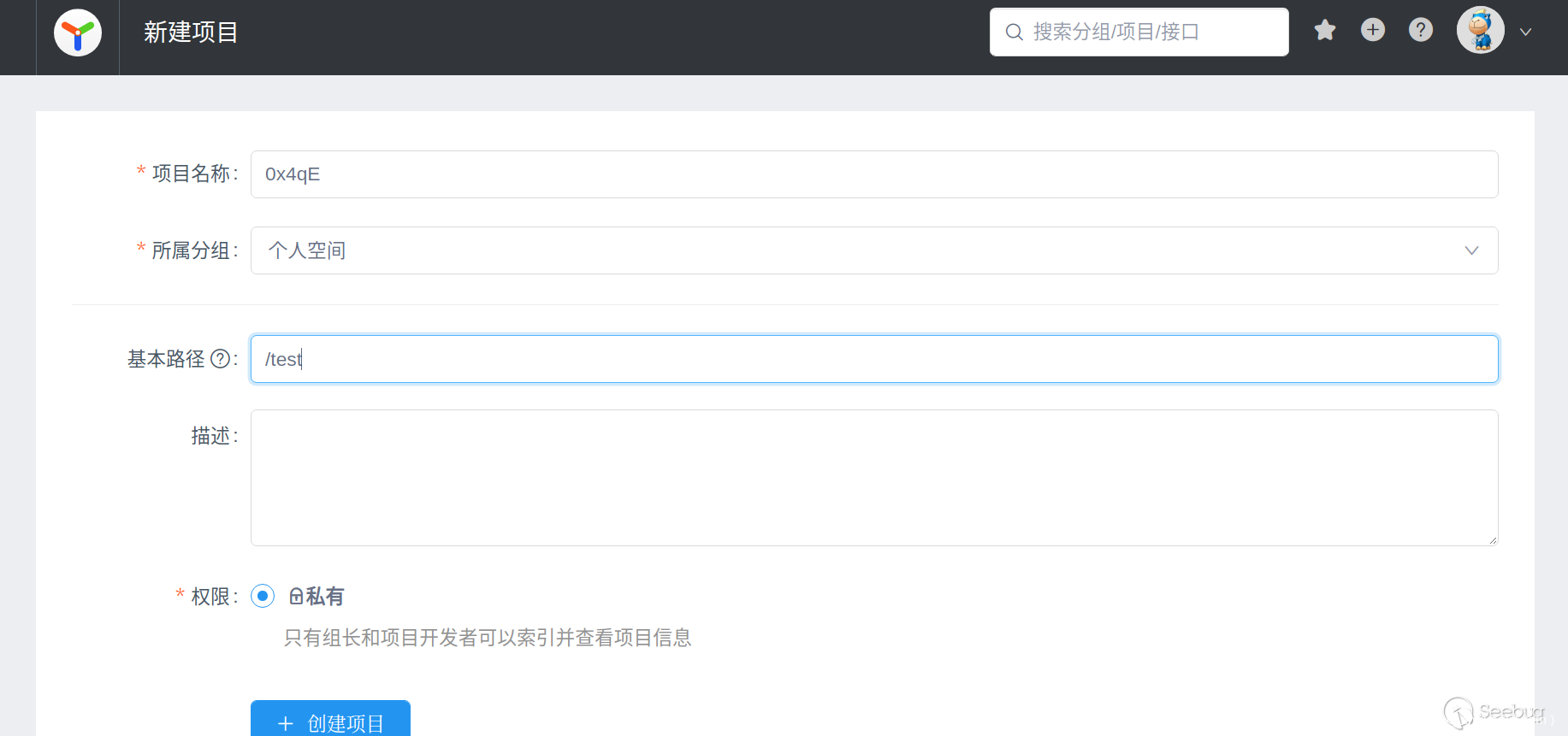 攻击者通过注册功能注册一个新用户,在新建项目页面创建一个新项目。