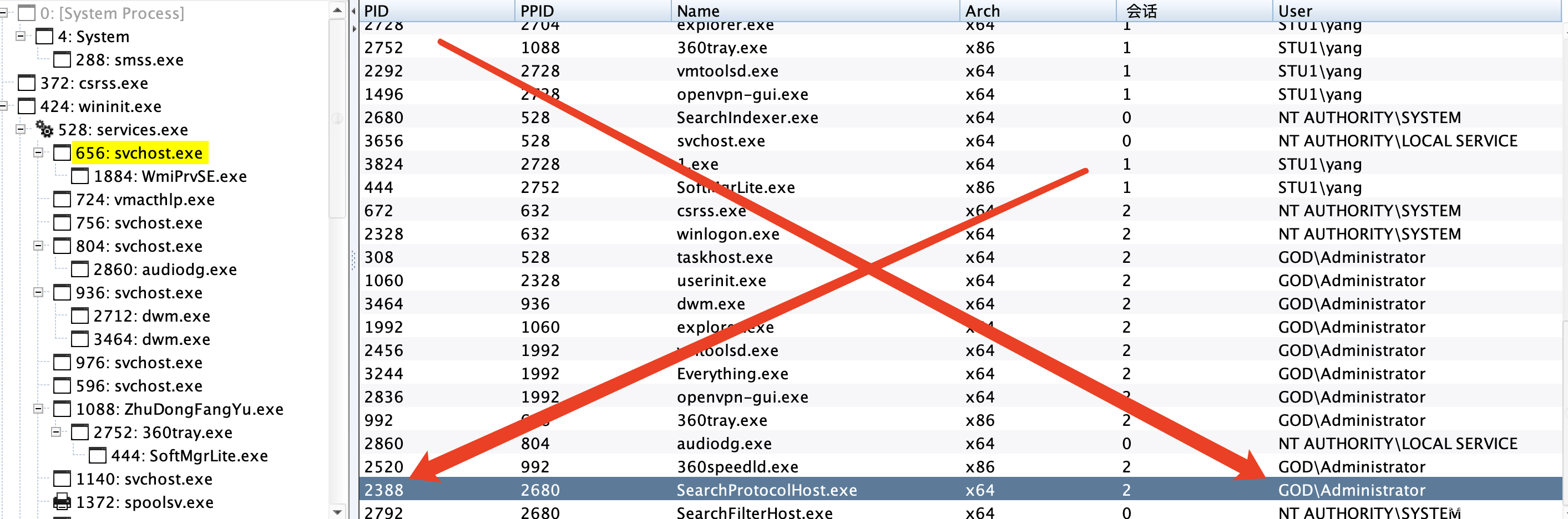 此时可以看到我们的进程列表中就会多了GOD\Administrator的进程。