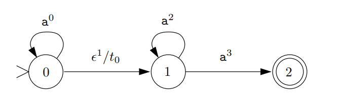 当然,tag的添加不具有唯一性,比如正则表达式为(a|b)t_0 b (a|b)\的处理机制,对于abba信号,t_0可以标记在第一个a后面,也可以标记在第一个b后面。为此,我们添加一项原则使得tag唯一。对于包含重复处理机制的匹配,我们尽可能的多去实现重复,也就是说,除非当前处理机制不能应用,或者应用当前匹配机制后无法继续匹配,否则使用当前处理机制。