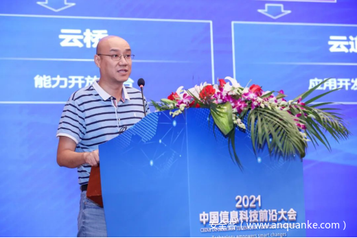 7月17日,由中国信息协会主办的中国信息科技前沿大会于北京顺利召开。本届大会以“数据赋能·智享变革”为主题,中国信息协会副会长吴钰、中国工程院院士沈昌祥、国际欧亚科学院院士张景安、工信部产业政策司原副司长辛仁周、商务部电子商务和信息化司原副司长聂林海等院士、行业专家与企业领袖出席会议,共同探讨了数字经济时代下的产业变革及数据安全合规话题。中国电信首席专家江峰受邀出席会议,并在会上进行了主题为“云网数智安一体,赋能产业数字化变革”的演讲。