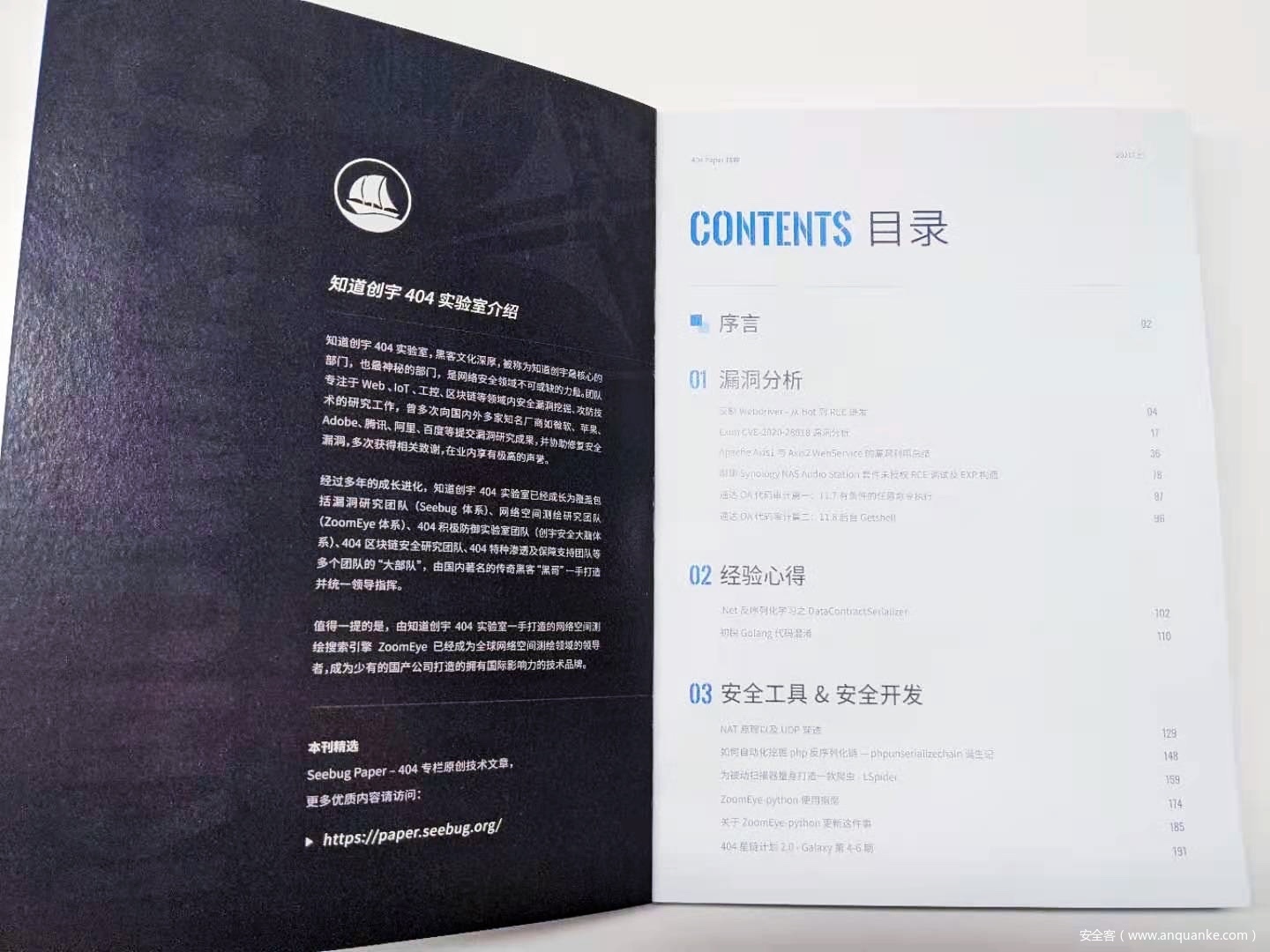 这样一本质感满满的期刊捧在手里,能让你感受得到404实验室对待技术的诚意满满。值得细细品读,值得好好收藏~