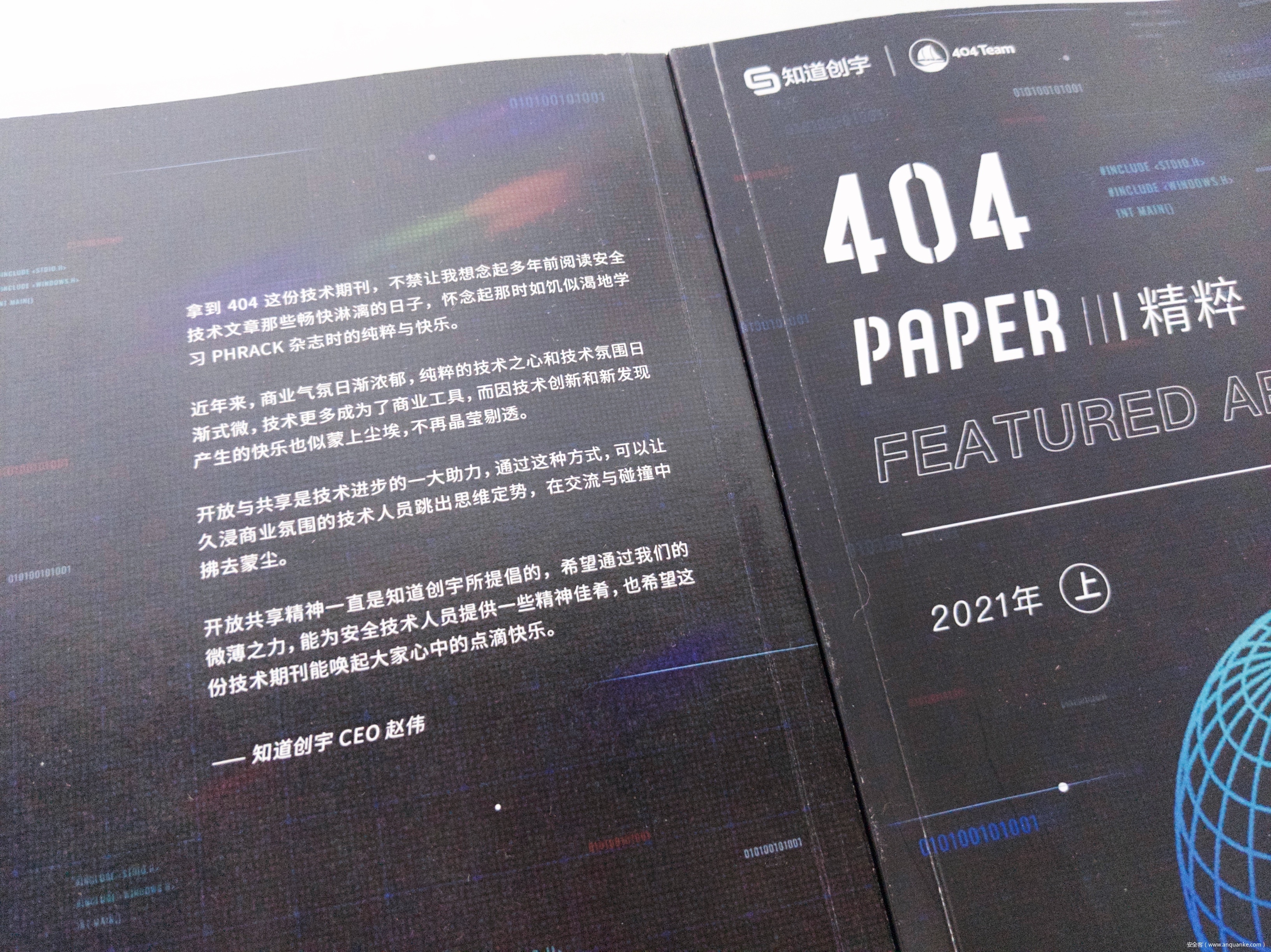 知道创宇404实验室原创技术刊物《404 Paper 精粹 2021年(上)》正式发布了!(文末互动送出~)