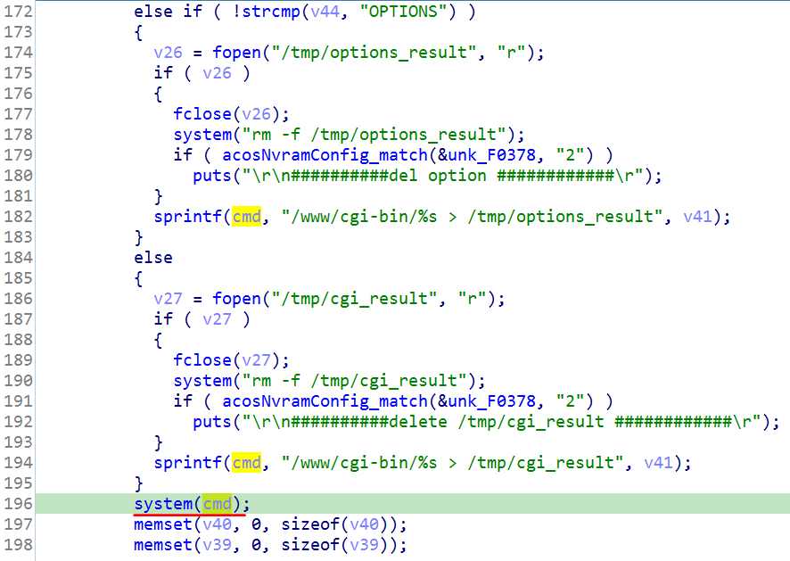 将要分析的httpd,拖到IDA中分析,并通过CVE给出的部分信息,大概可以知道,漏洞点出现在图5中。在Mozi程序中,也可以分析出,该漏洞是一个命令执行漏洞,那么只需要找system等命令执行函数即可。