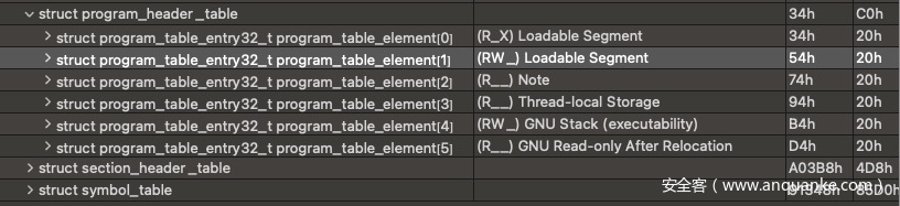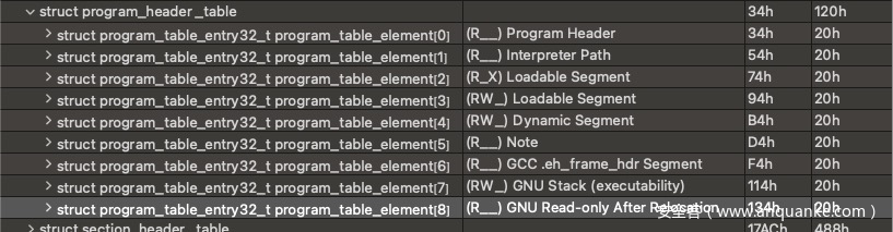 注意 PT_GNU_RELRO 段指向的数据和第二个 PT_LOAD 段指向的是同一块数据。