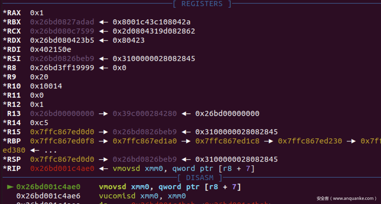 console.log('0x' + hex(d2u(leak)[0]));