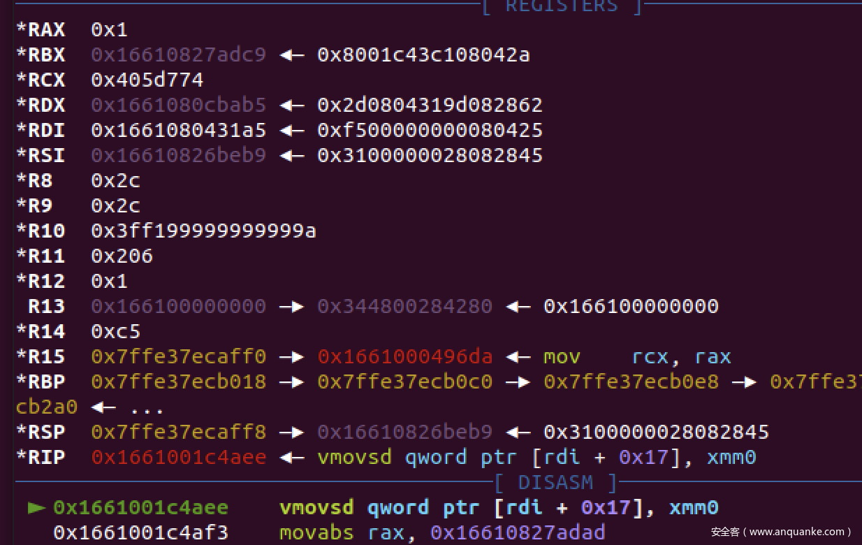 这里就会有一个问题,elements里面存放的值都是指针压缩后的地址,当作object去写入的话肯定是不行的,看rdi的值也可以发现,他直接取了0xf500000000080425为地址。
