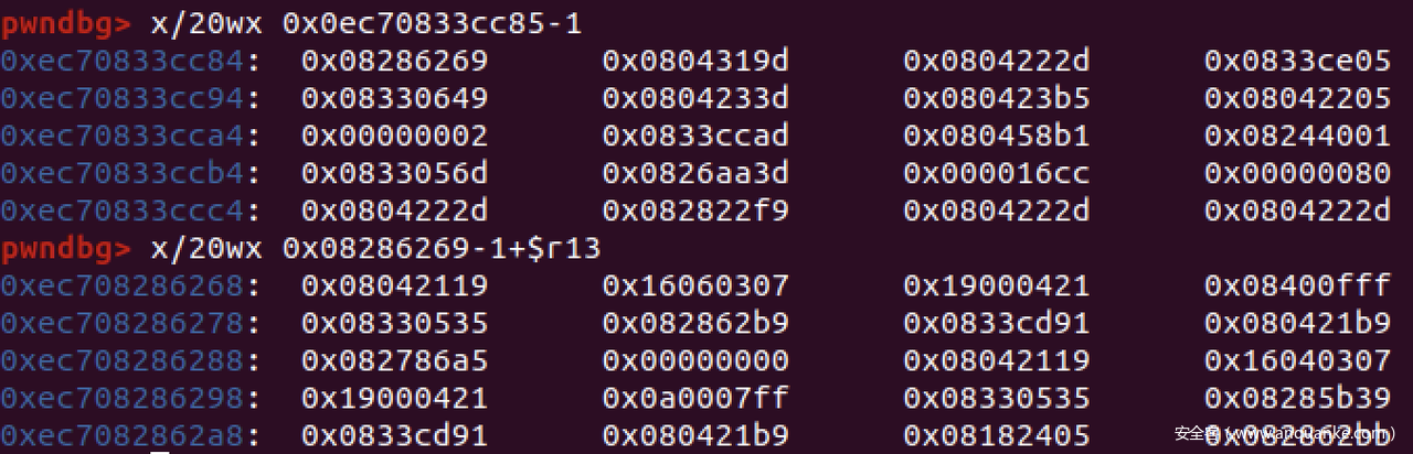 而且就算是在32位没有指针压缩的情况下进行越界写,它还是会取8字节的值作为object来进行写入: