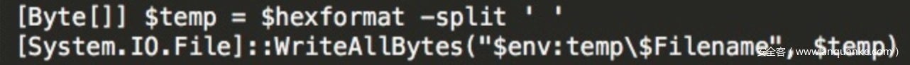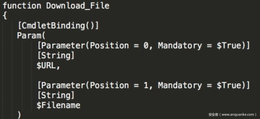 函数Download_File,调用[System.IO.File]::WriteAllBytes(“$env:temp$Filename”, $temp)从失陷主机下载文件