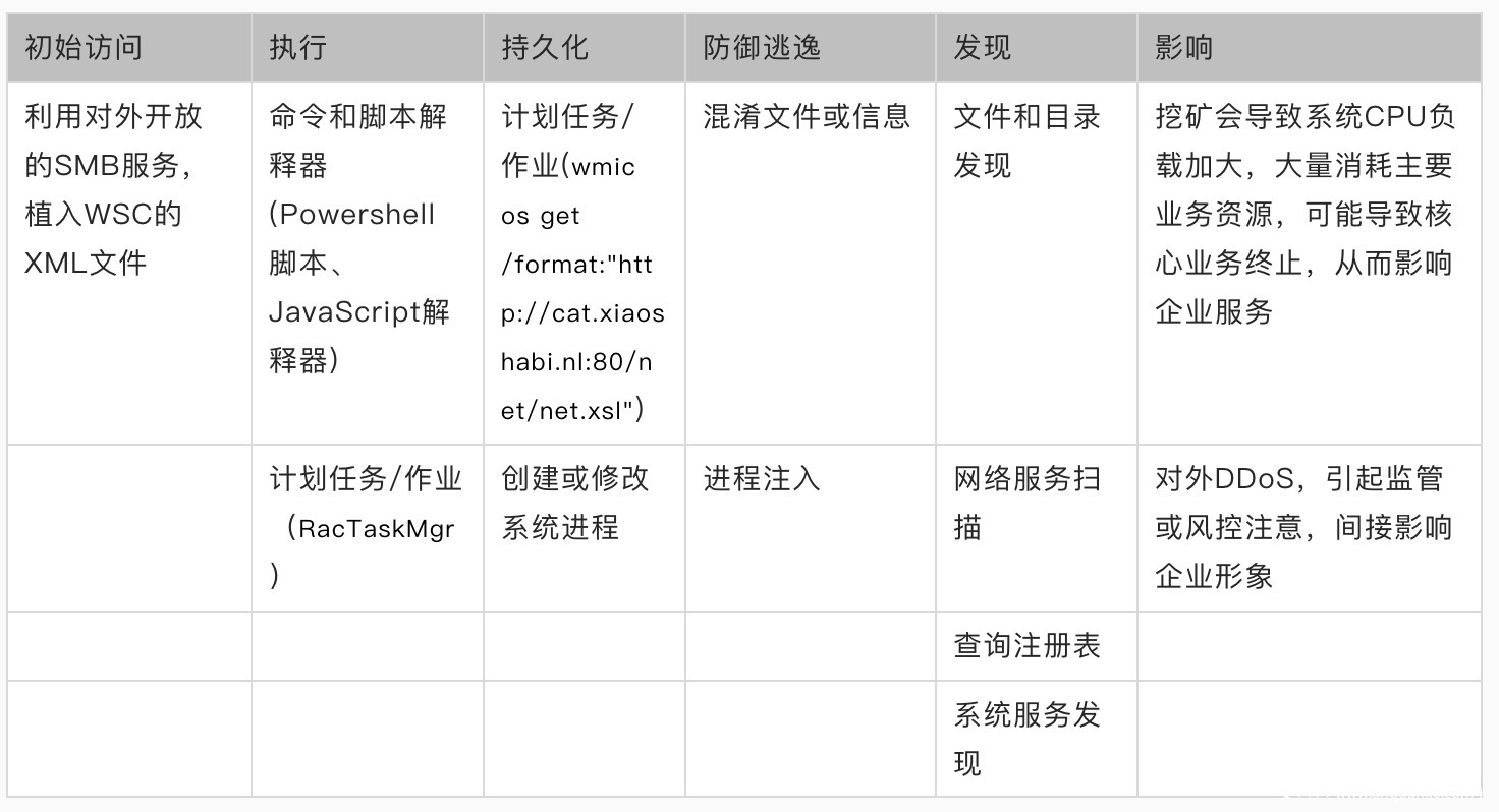 JSBOT通过MS17-010漏洞进行入侵和传播,利用WSC技术实现无文件化的维持和后续攻击,通过从云端下载经过编码的二进制文件,实现对外DDoS和挖矿行为,通过Powershell核心函数实现对失陷主机的下载、发送文件、WMIExec等功能。