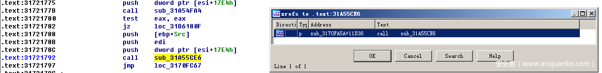 可以看到v3就是xml文件中的标签,在解析到idmp标签后程序崩溃,然而并没有看到font标签,于是寻找到崩溃函数的父函数sub_3170FA5A