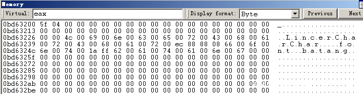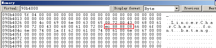 此时TagObject[4]+0x44的值为0x090b4000,查看该值在内存中存储的数据: