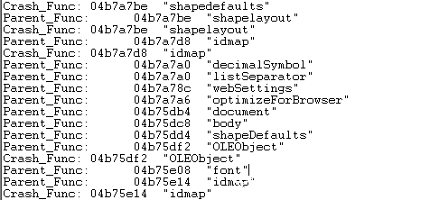 40个xml文件内容一致,加载了CLSID为{00000000-0000-0000-0000-000000000001}的对象,然而系统中并没有这个对象,所以并不会加载任何对象,这么做是为了提高堆喷的效率,具体原理可查看SPRAYING THE HEAP IN SECONDS USING ACTIVEX CONTROLS IN MICROSOFT OFFICE一文。