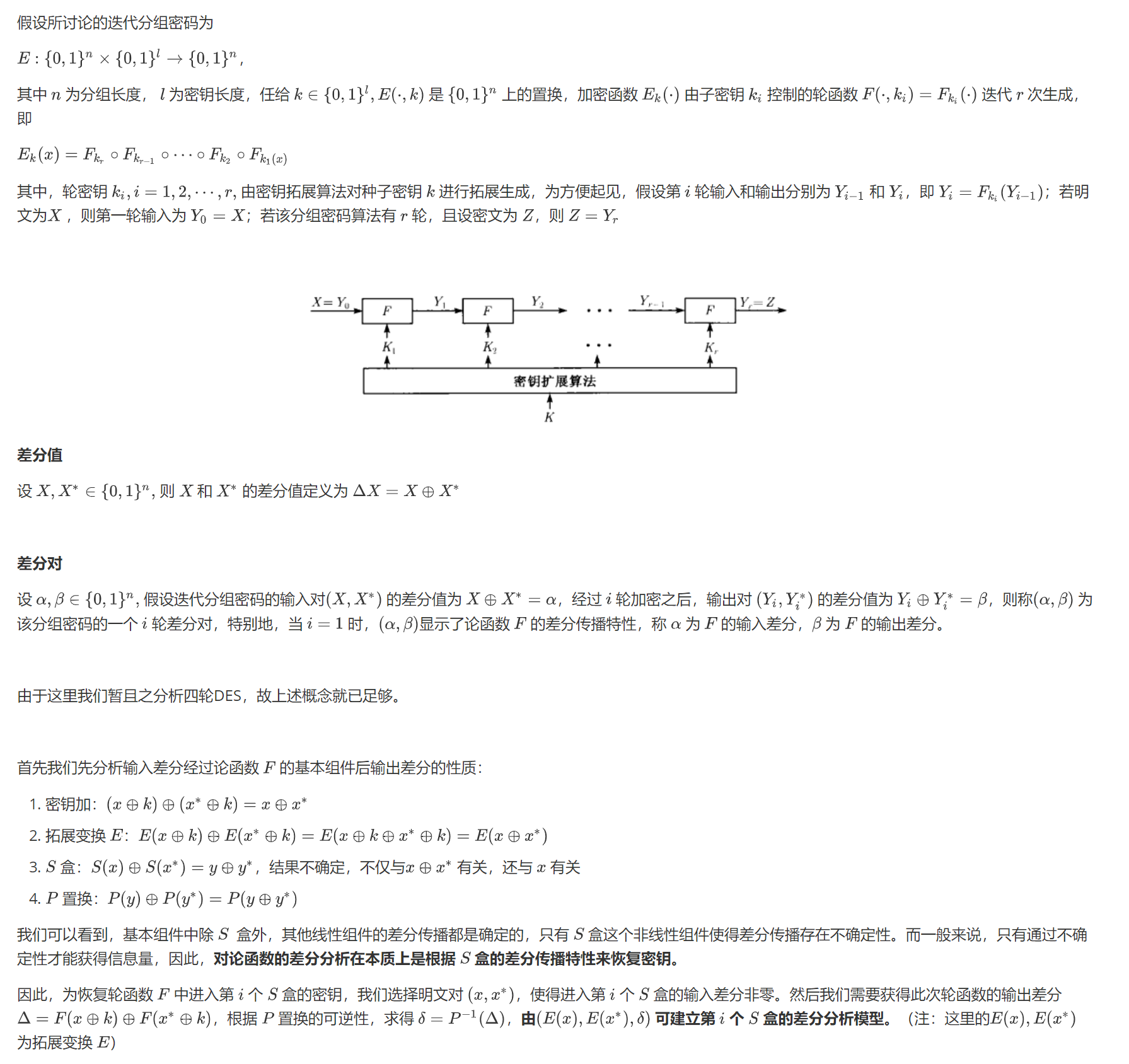 对于差分密码分析的学习,参考《分组密码的攻击方法与实例分析》