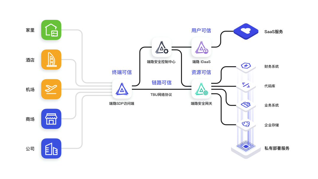 端隐SDP不仅支持企业内部服务,如数据后台、OA系统、CRM系统、财务系统、共享存储、代码管理、项目管理等私有部署应用。同时还支持云端服务,如阿里云、腾讯云、华为云、钉钉、企业微信等 云端应用,端隐私有化部署,应用内部数据全程多层加密,在保障访问安全的同时保证内部数据不外露,帮助企业解决内部风险管控问题。同时针对游戏行业以及出海客户,端隐SDP产品内部也兼容了跨境访问及加速的功能,可在保障内控安全的同时解决此种场景的需求,无论是异地分部员工还是全球客 户都能享受到快速稳定的访问体验。