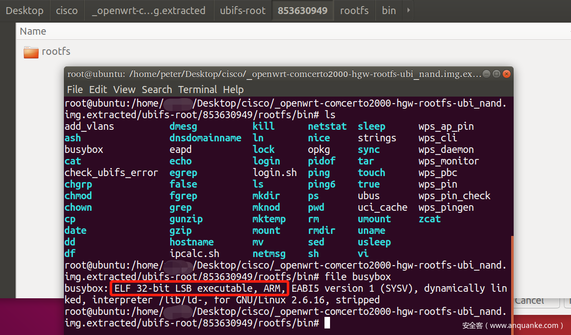 可得到一个较大的openwrt-comcerto2000-hgw-rootfs-ubi_nand.img文件,由此可知此型号的路由器固件是基于openwrt开发而来?OpenWRT是一个高度模块化、高度自动化的嵌入式Linux系统,拥有强大的网络组件和扩展性,多被用于工控设备、电话、小型机器人、智能家居、路由器以及VOIP设备中。文件系统为ubi,与常见bin格式的Squashfs文件系统相比,Squashfs有更好的压缩性。