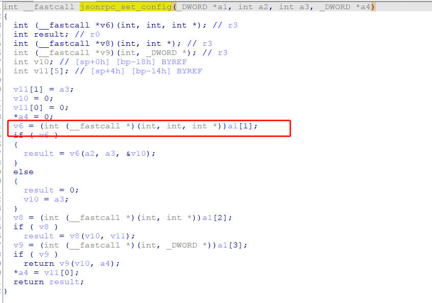 使用IDA打开libjsess.so定位到导出函数jsonrpc_set_config,发现函数被动态调用,而我们又无法动态调试此文件,因此无法获取到函数的真实地址。