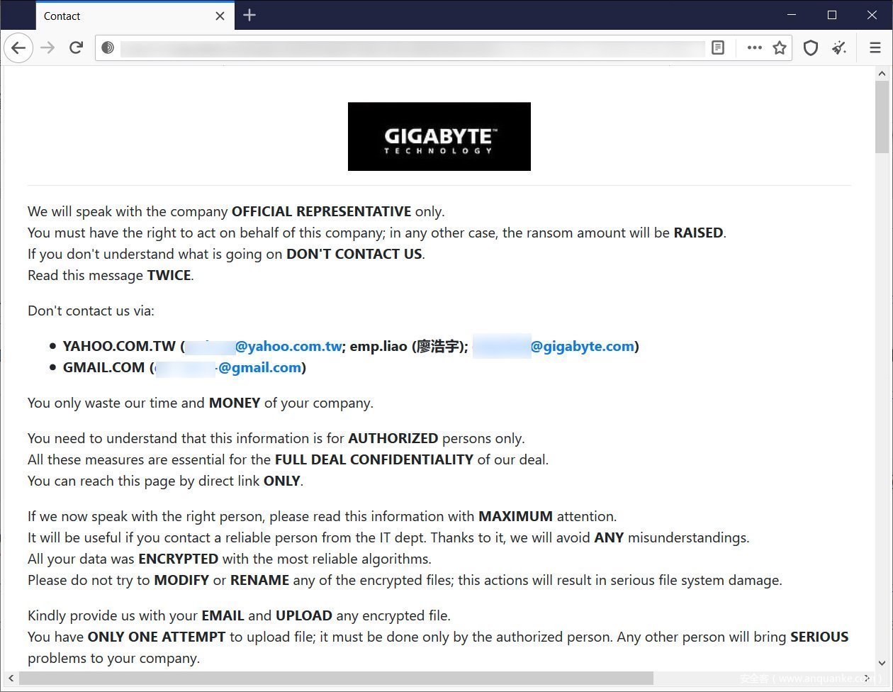 日前,中国台湾计算机硬件供应巨头技嘉遭受勒索软件攻击,不法黑客威胁称如若不缴纳赎金将公布超112GB盗窃数据。