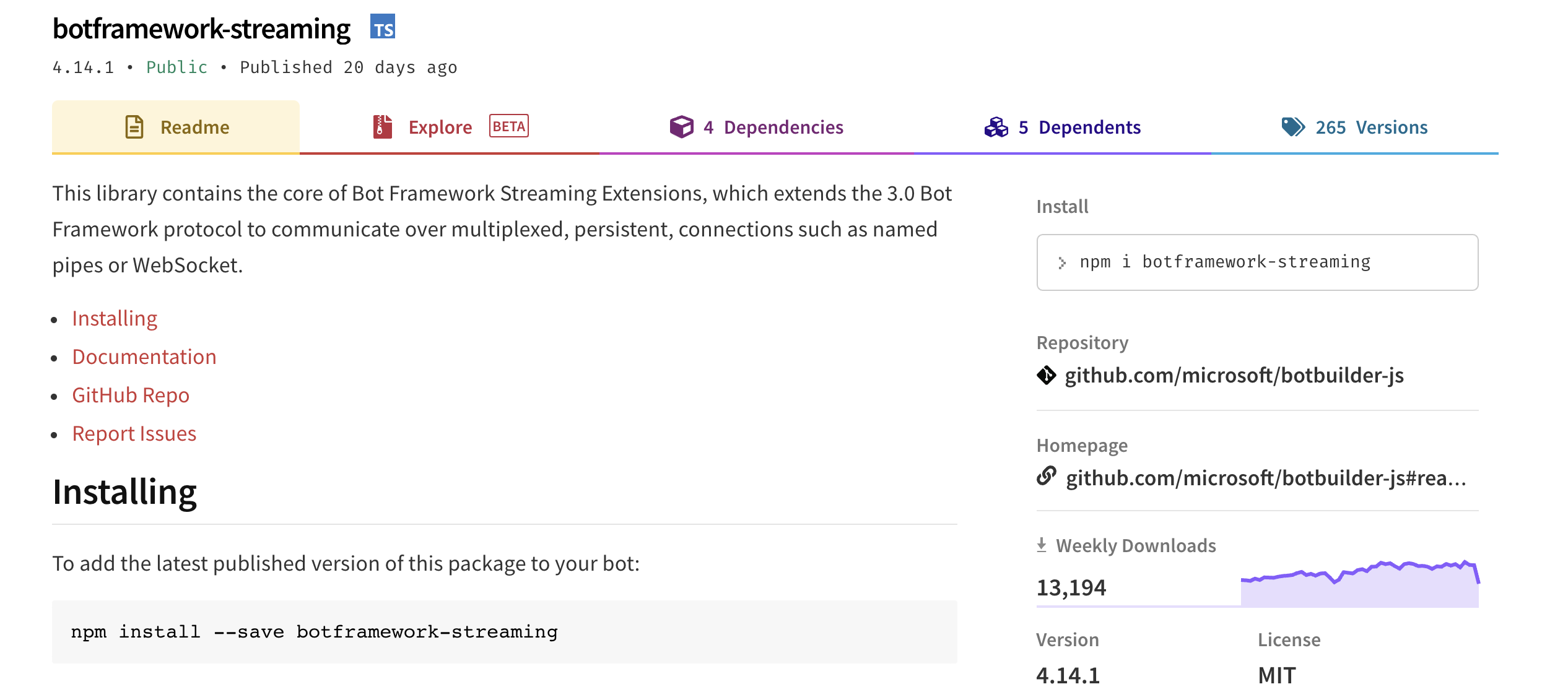 从6月18日以来共发现恶意组件超过1000+,下载量超过1.8w+,平均每个恶意组件下载次数达到了18次,其中恶意包botframework-streaming下载量高达5422次,为所有发现恶意组件中下载量最大的。分析其原因猜测是因为麻省理工学院在NPM上发布了一个有关机器人的第三方SDK,名称是botframework-streaming,每周下载量达到1w+,共发布了265个版本,对应的github仓库为:https://github.com/Microsoft/botbuilder-js。2021年7月28日恶意攻击者发现该包名在PyPi上没有注册,因此进行了抢注,并将版本号设置成和当时botframework-streaming最新版本号一致为4.14.0。