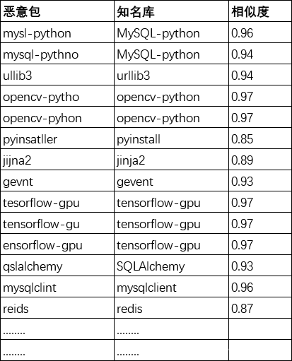 7月27日至7月30日无恒实验室检测到邮箱为nonexists@gmail.com的作者上传了354个恶意包,包名与知名包名的平均相似度为94%,部分包名信息及相似度信息如下所示:
