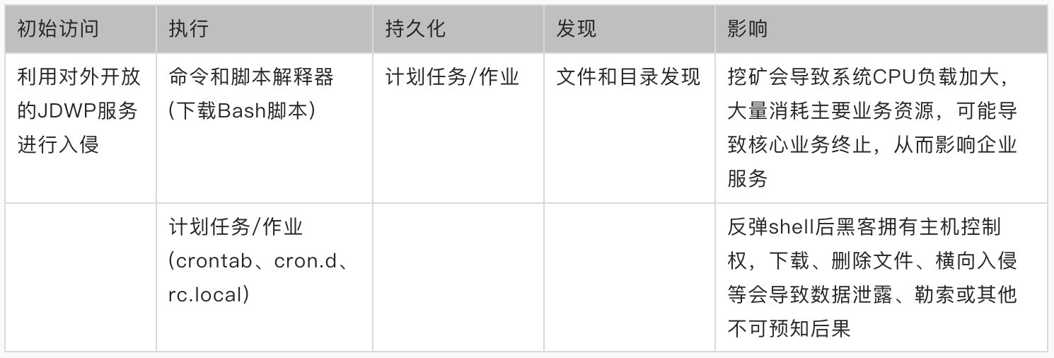 近日,阿里云安全监测到一种利用JDWP RCE漏洞进行挖矿的恶意攻击,JDWP广泛使用于JAVA应用程序开发调试阶段,而JAVA又广泛用于开发电商、办公应用、CMS等日常息息相关的平台,如果软件发布中未将远程调试关闭,将留下重大隐患,而JDWPMiner正式利用这一特性进行入侵牟利。